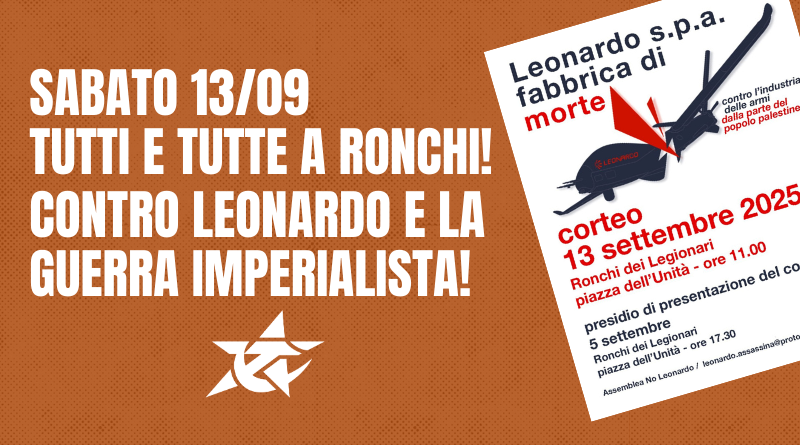 SABATO 13 SETTEMBRE TUTTI E TUTTE A RONCHI, CONTRO LEONARDO E LA GUERRA IMPERIALISTA!